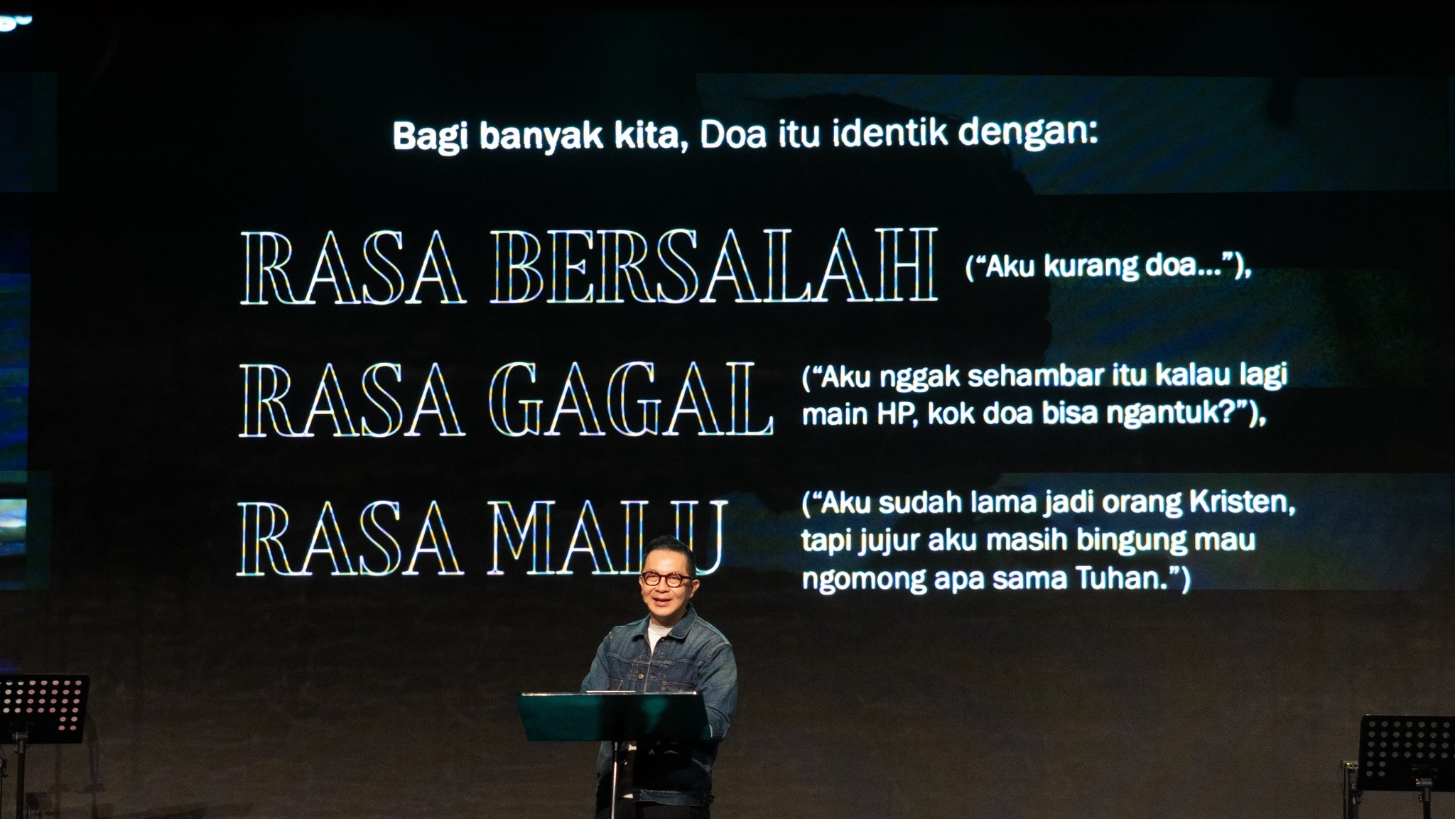 Bagi banyak orang, doa identik dengan rasa bersalah atau gagal karena lebih tertarik membuka ponsel daripada berdoa. Ada yang malu karena sudah lama Kristen tetapi masih bingung berbicara dengan Tuhan. Hal ini membuat doa menjadi dangkal dan hanya muncul saat krisis sehingga yang terdengar adalah doa panik, bukan doa relasi. Akibatnya, kita tidak menikmati perjumpaan dengan Bapa yang mengasihi.