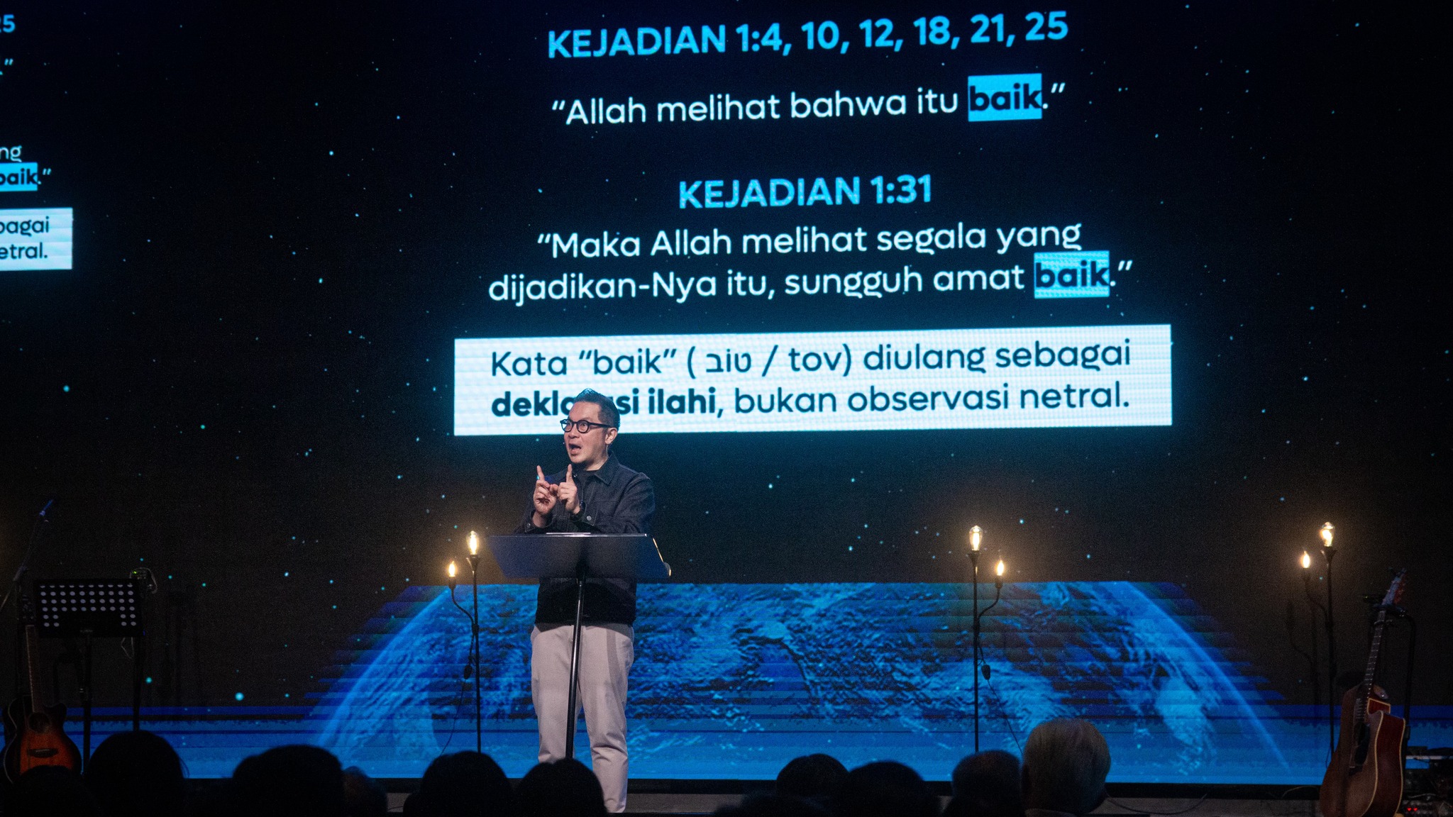 Untuk membaca zaman yang rapuh ini dengan benar, kita harus kembali ke awal cerita. Kejadian pasal satu mengundang kita untuk melihat seluruh kehidupan di dunia yang goyah ini melalui lensa yang benar. Kitab Kejadian tidak dibuka dengan tips hidup sukses atau cara bertahan di tengah krisis. Yang pertama kali dinyatakan adalah siapa yang menciptakan dunia dan siapa yang menciptakan alam semesta. Ketika hal itu dipahami, ketenangan akan lahir. Karena itu, hari ini ada tiga poin utama. Pertama, memahami doktrin penciptaan. Kedua, mempraktikkan doktrin penciptaan. Ketiga, mengalami doktrin penciptaan itu melalui Injil.